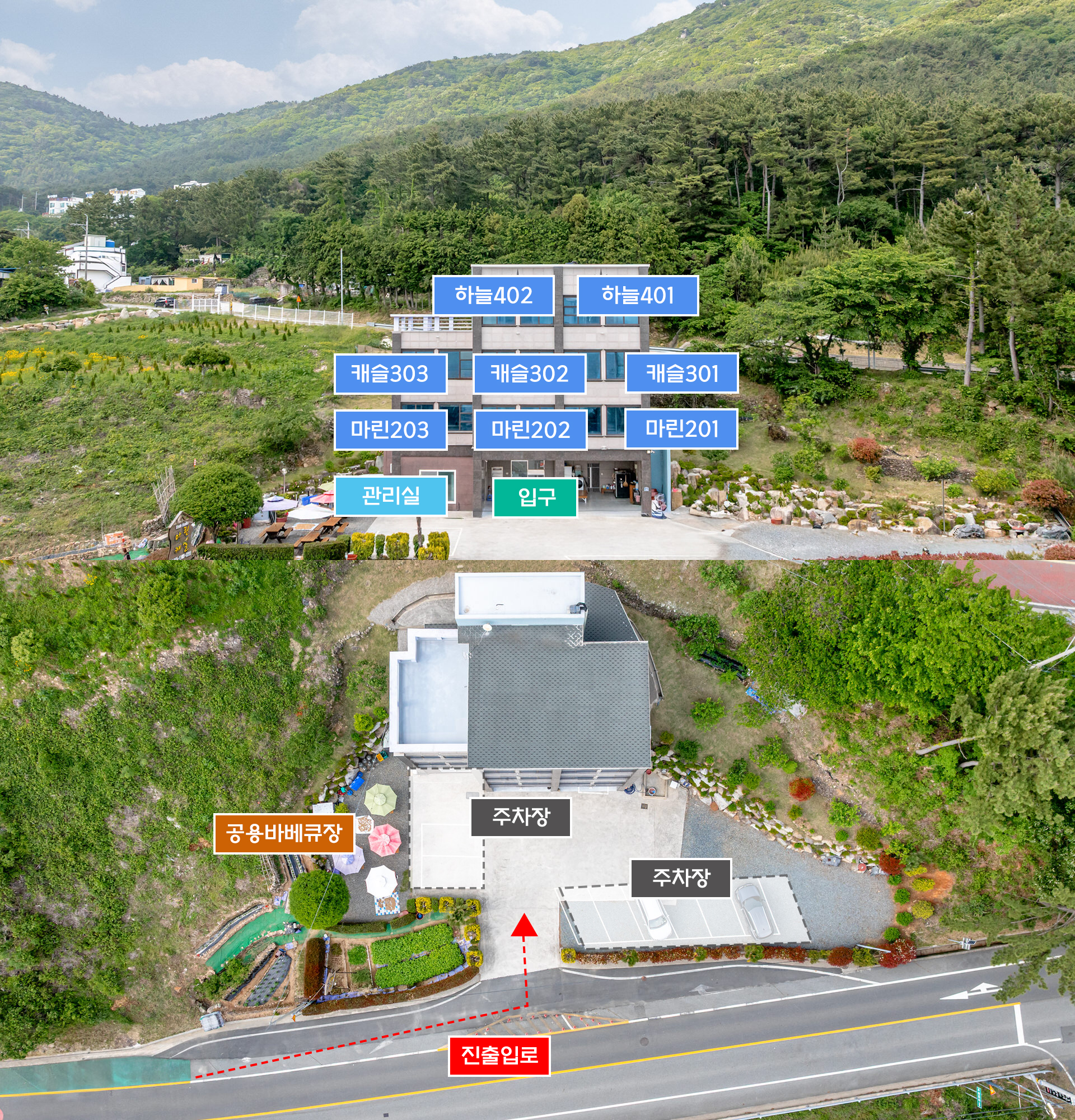 거제 마린캐슬 스파 펜션 배치도 안내입니다.